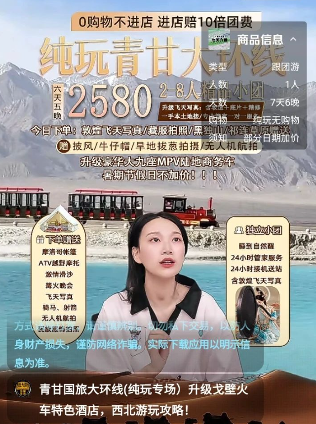 妙旅沒有貪多求全,也沒有幻想每一款產品都能火,他們把直播主力資源,穩穩壓在青甘大環線 4/6/8 人小團這些爆款上。