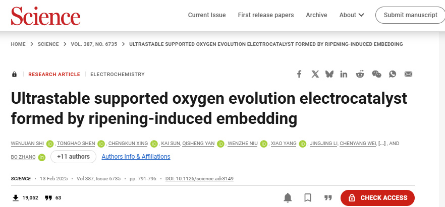 2025年2月,徐一飛團隊與復旦大學教授張波團隊、徐昕團隊合作,在Science上發表了新型嵌入式催化劑成果,讓冷凍電鏡技術走進能源氫能等國家戰略需求的前沿。