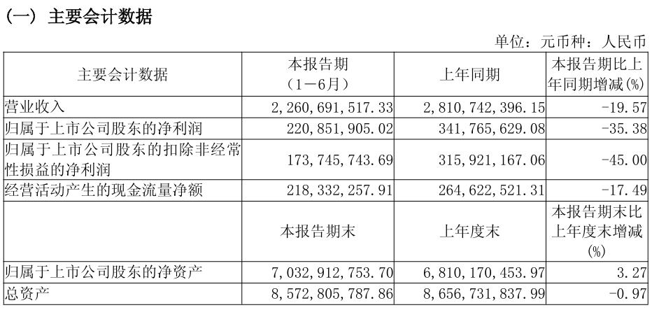 8月27日,華熙生物(688363.SH)交出“最差”半年報,三大核心指標集體下滑:2025年上半年,華熙生物實現營收22.61億元,同比下降19.57%;歸母淨利潤為2.21億元,同比下降35.38%;扣非淨利潤為1.73億元,同比下降45%。