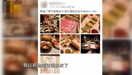 據她説這是寧波最貴的火鍋店,人均消費1258元:“聽説裝修花了幾千萬上億這樣子的……”