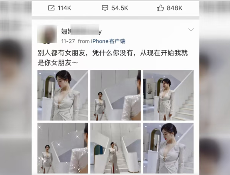 有一天,一名男子在她社交平台上留言,説要請她吃飯。