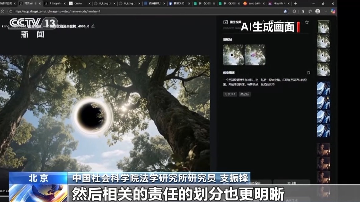 中國社會科學院法學研究所研究員 支振鋒:標識辦法區分了生成合成內容不同主體的責任,對生成人工智能這種生成合成內容進行一個全鏈條的監管,不管是生成人工智能服務的提供者還是用户,既要按照這個辦法的要求去進行標識,還要按照國家強制標準的要求進行標識,這樣就把從製作、傳播、發佈等等這個鏈條理得更清楚,然後相關的責任劃分也更明晰。
