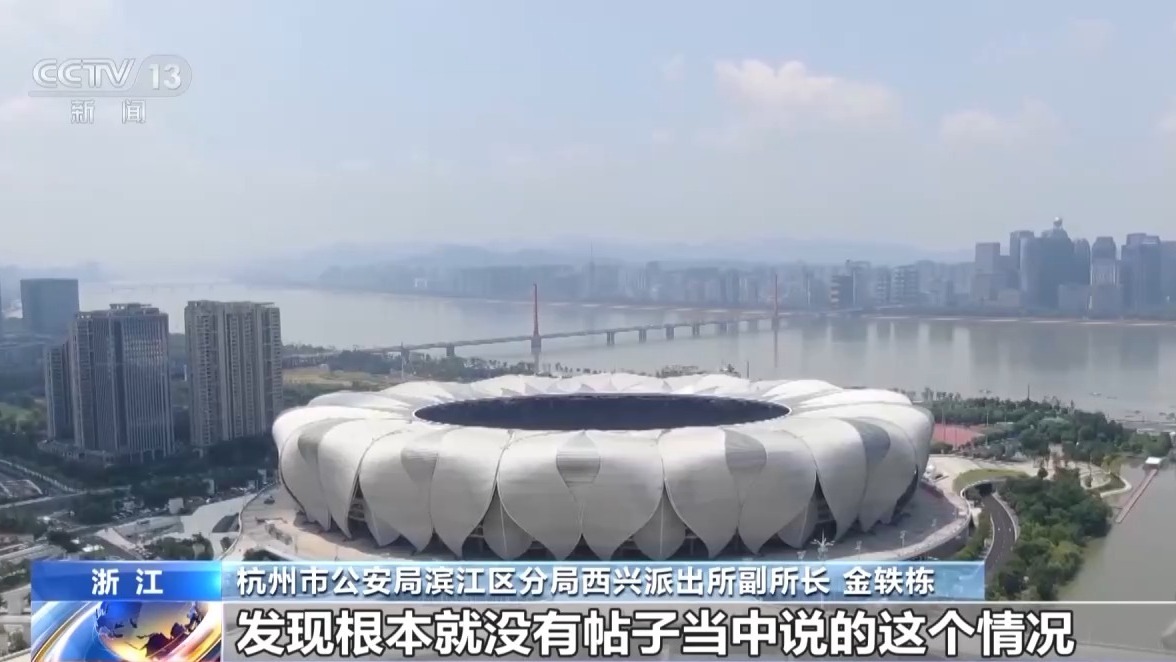 浙江杭州市公安局濱江區分局西興派出所副所長 金軼棟:我們發現這個情況以後,也是第一時間和這個奧體場館進行了聯繫,包括也去現場實地看了,發現根本就沒有帖子當中説的這個情況,那麼初步判斷這就是一個虛構事實,擾亂公共秩序的違法行為。