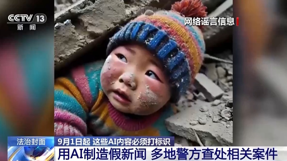 今年1月,西藏定日縣發生6.8級地震。在全國人民關注搶險救援的時候,“小男孩被埋圖”在互聯網平台迅速傳播,並配文日喀則地震等關鍵詞,引發大量網民關注。由於畫面中小男孩有6根手指,AI生成的痕跡明顯,謠言很快被識破。相關人員也受到了處理。