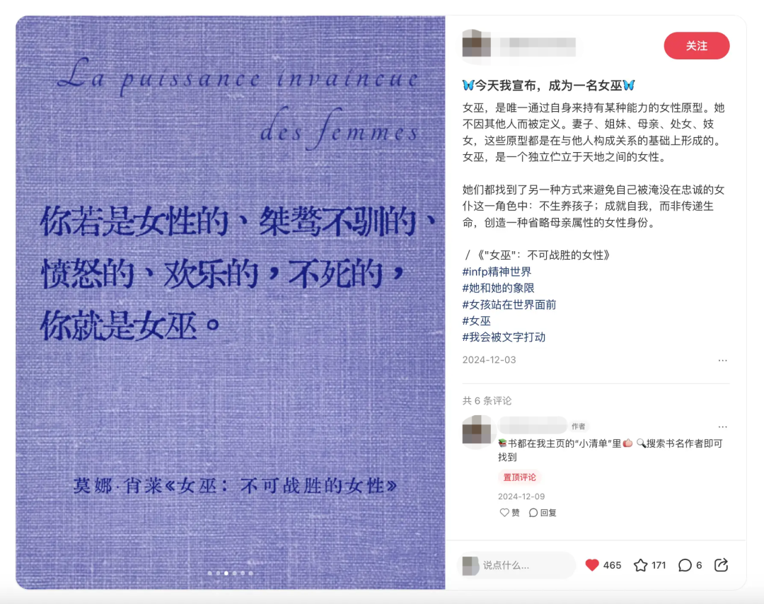 通過互聯網語境的重塑,女巫本身正在成為一種新的身份想象,她們在迫害與排擠中倖存的歷史,如今被轉化為力量的象徵:不被規則束縛,不因性別身份而被定義。