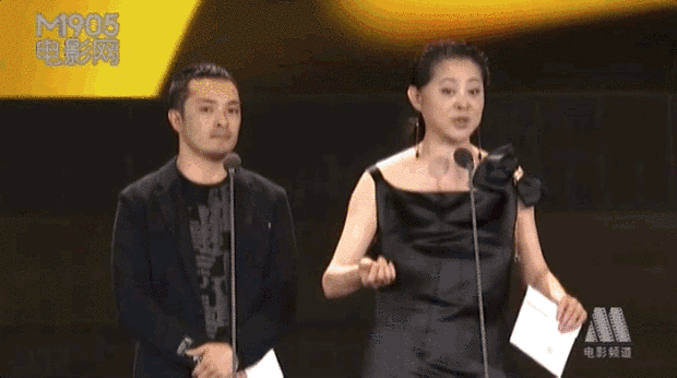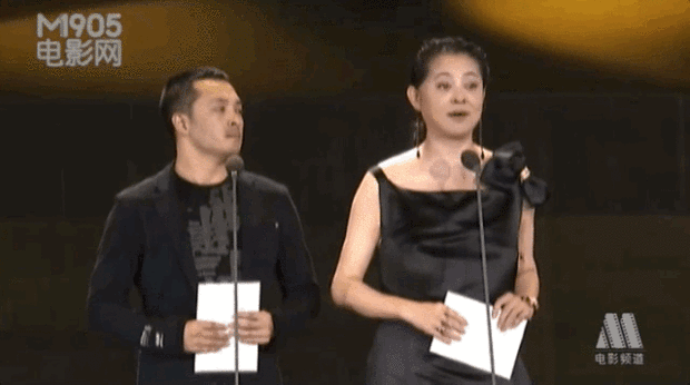 “今天評委一介紹完,我不就下台了嘛。然後有一個女的上來拉着我的手,這就是今天晚上的頭一個獎,最佳女配的提名人遲蓬。