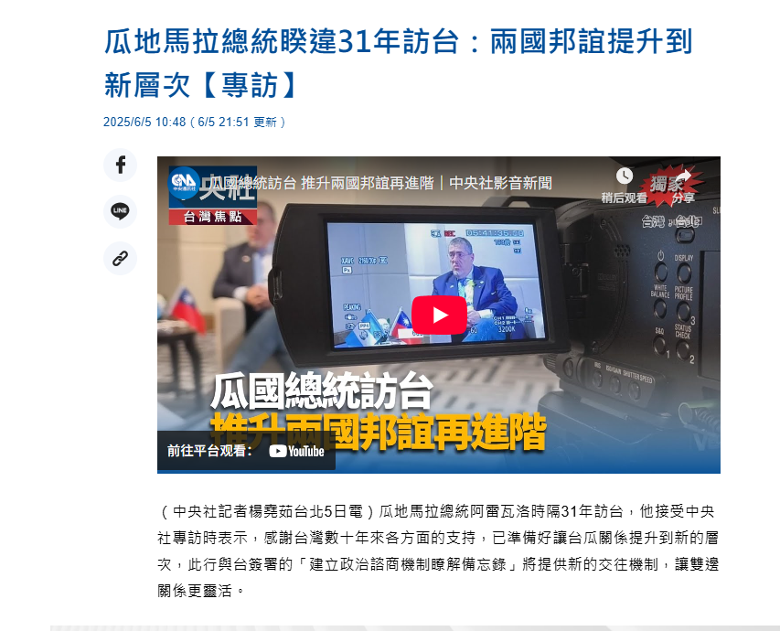 就在今年6月5日,危地馬拉總統阿雷瓦洛做出一項重大外交舉動——他率領10名政府高官抵達台灣,與賴清德握手擁抱並互稱"兄弟",更高調宣稱要"將危台關係提升至新高度"。