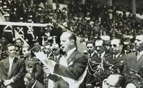 1951年,雅各布·阿本斯·古茲曼在就任危地馬拉總統時向人羣發表講話