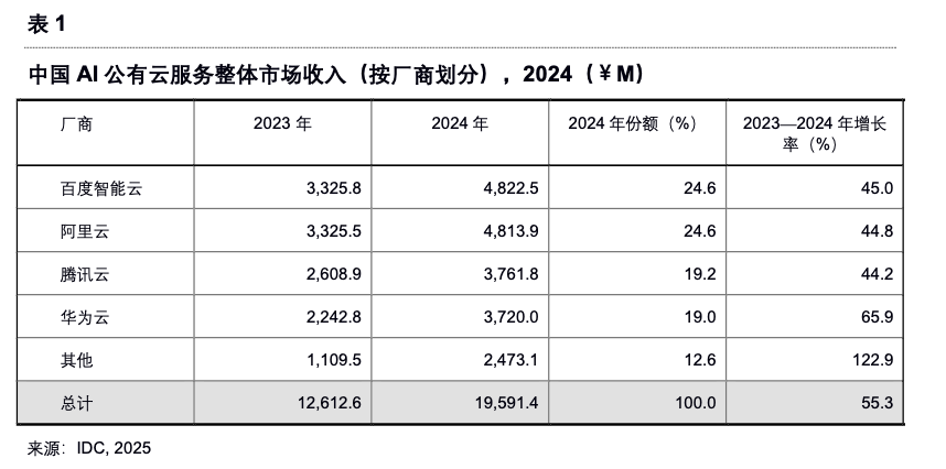 IDC,《中國AI公有云服務市場份額,2024:全面向生成式AI演進》