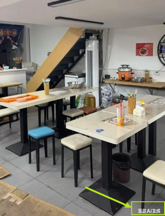 乍一看,乾淨整潔,窗明几淨。結果仔細一瞧,圖片的右下角又寫着幾個大字——「 豆包 AI 生成 」。