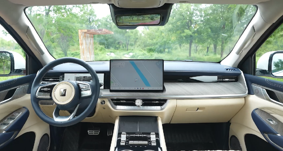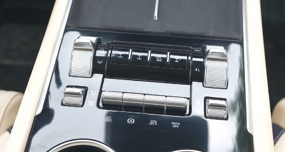 繼續往下是兩個50瓦的風冷無線充電板。然後是駕駛模式切換,越野模式切換,以及前鎖後鎖等等。這些越野相關的這些功能,整個中控儀表板,採用的是一個“丹陛石”的設計,寓意平步青雲。