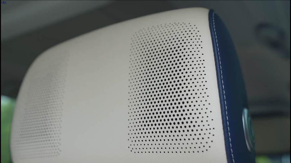 坦克500的音響系統,是採用了12+2的佈局,其中這個2是主駕的頭枕揚聲器。可以從這個頭枕兩側來發聲,並且可以自己選擇切換聲場。比如切換到專注模式,就是所有聲音都從頭枕來播放,不影響其他的乘客。