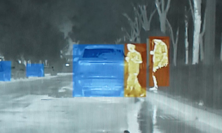 前面外觀部分有一點我漏掉了,就是中網下面的遠紅外熱成像,這個東西在晚上回小區,躲避行人和電動車時真的非常好用。對比正常駕駛員人眼的視角,紅外熱成像可以直接分類,識別出行人和車輛,並以不同顏色顯示在屏幕上。
