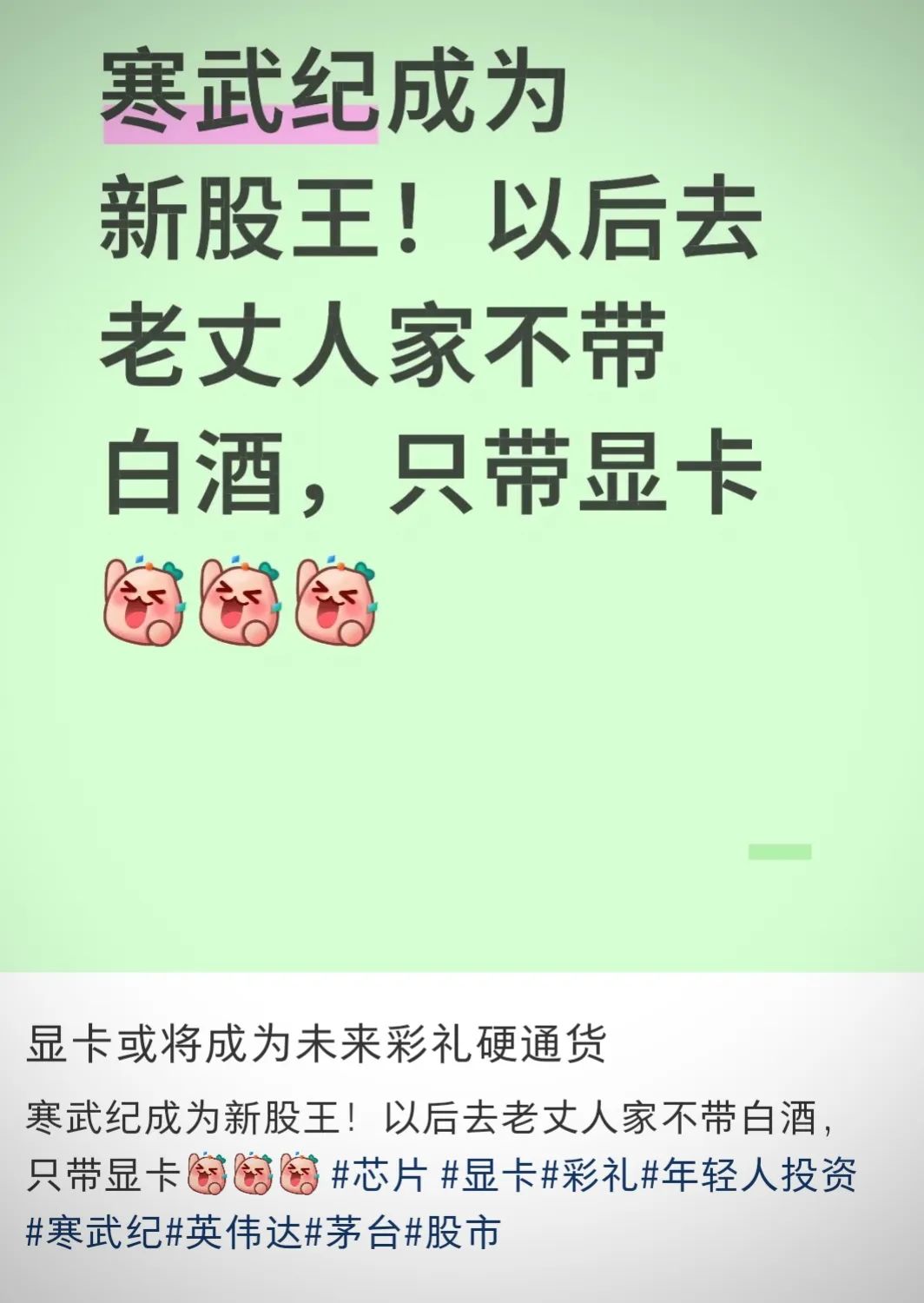 誰也想不到就在這兩天,寒武紀的股票突然如同坐火箭飆升,市值衝上6000億,一度超越貴州茅台。不少人一夜賬户就多了幾萬幾十萬。