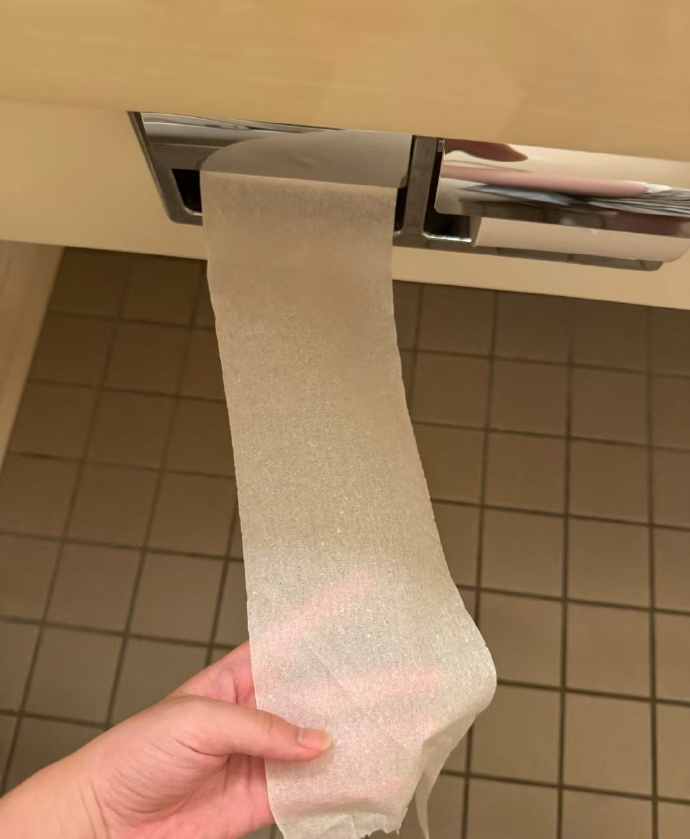 在車站、公廁、學校等公共場所,廁紙通常由管理方統一採購並免費提供。在這種“共用資源”的使用場景中,如何防止資源被過度消耗成為一個現實的問題。如果提供觸感柔軟、厚實的高級廁紙,不僅成本高昂,而且容易被使用者多抽浪費。