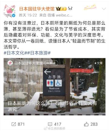 日本駐華大使館:從一卷廁紙,讀懂日本人的生活哲學結果翻車被羣嘲關評論了_風聞