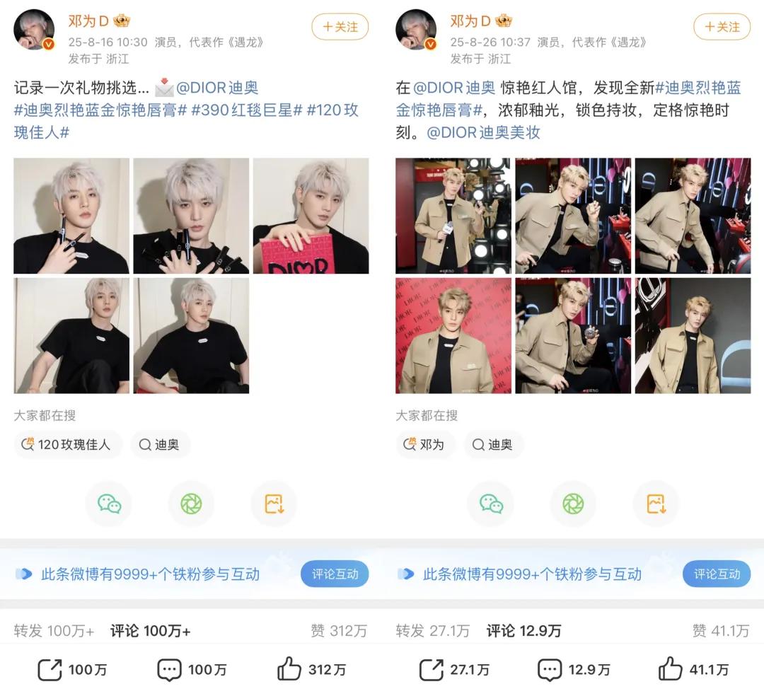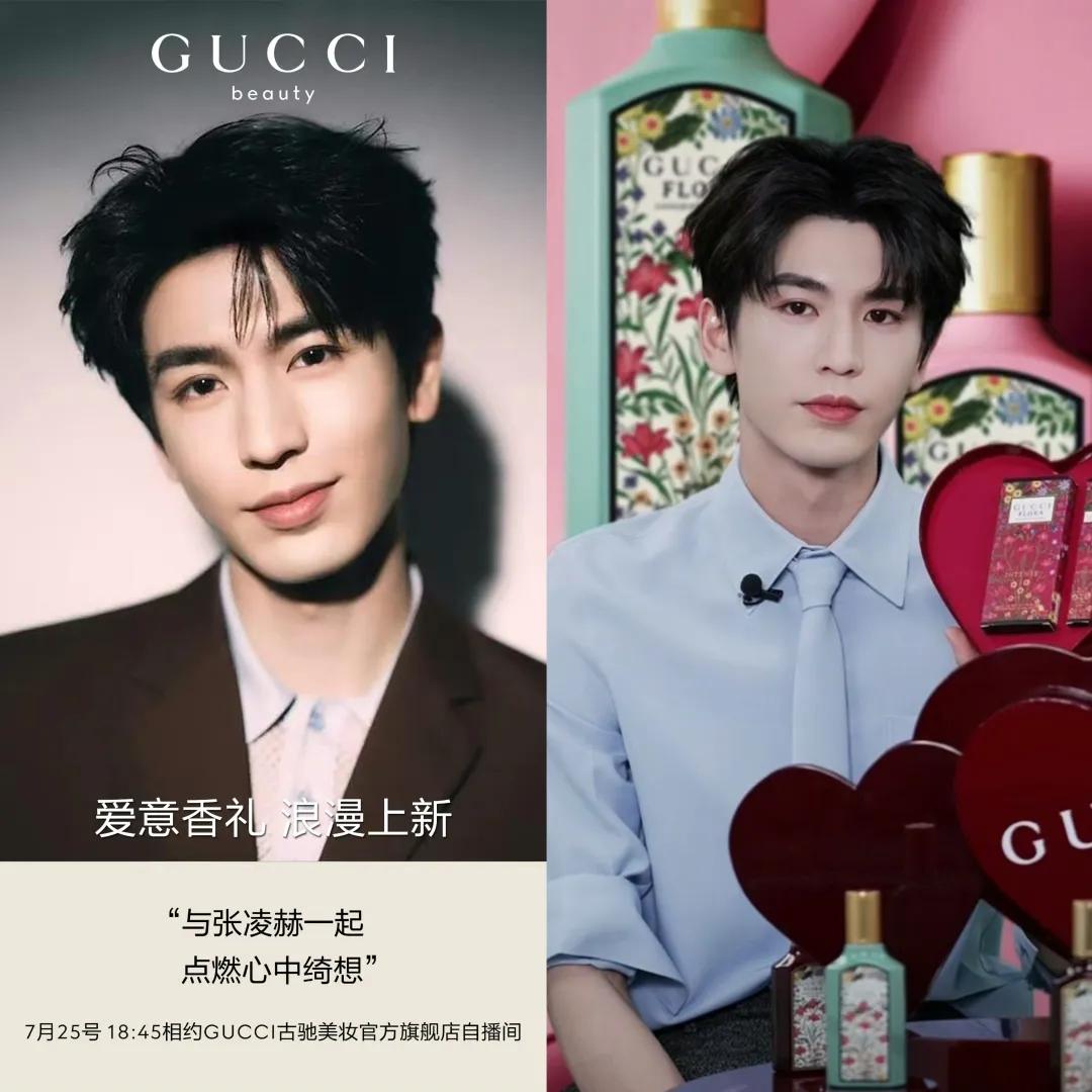 所以能看到,**如今奢侈品牌大多已玩轉粉絲經濟邏輯,**玩法的成熟度已經趨近於美妝快消行業——提前數月官宣大使或代言人,拍攝廣告大片與海報,通過社交媒體持續互動、共創內容,不斷積累粉絲的關注度。隨後,品牌通過直播帶貨和限定禮盒,進一步激發粉絲的消費行為——例如Gucci邀請張凌赫進入直播間推廣香氛產品,Dior在鄧為升任全球美妝大使後推出“七夕抱抱愛”禮盒,並結合線下活動實現品效合一。
