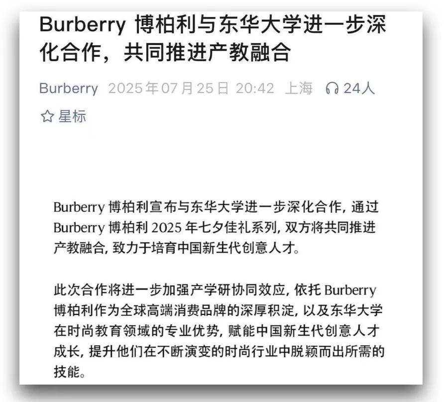 同時品牌也選擇與藝術家及本土創意人合作,藉助他們的專業視角實現文化“轉譯”,降低誤讀風險。例如巴黎世家邀請藝術家馮立掌鏡,於上海延慶路、外灘等真實街巷取景,在凸顯本土場景的同時,為品牌注入更具紀實感的美學風格;Burberry則攜手上海東華大學非遺研究中心,將中國傳統結藝進行現代轉譯,提升文化表達的準確性與創新性。