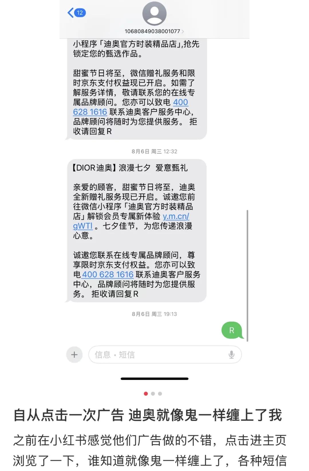 不少用户在社交平台吐槽,在點擊過 Dior 廣告,便會持續收到包括七夕在內的各類促銷短信。這種缺乏精準度和內容價值的溝通,並不能培養品牌忠誠度,反而是將品牌拉低至普通快消品的層面,構成對品牌精心營造的高級感的直接消耗。