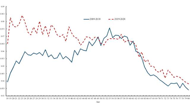 以往研究認為,人們的焦慮和壓力通常在中年時期達到頂峯,而後逐漸下降,在幸福感更高的青年和老年時期之間形成了一座“不幸福駝峯”。但一項覆蓋全球44個國家、涉及數百萬人的大規模研究發現,這一現象如今已在全球範圍內消失。這並非是因為中年人幸福感提升,而是因為年輕一代幸福感急劇下跌——換言之,如今最不幸福的羣體不再是中年人,而是年輕人。相關論文8月27日發表於PLOS One。