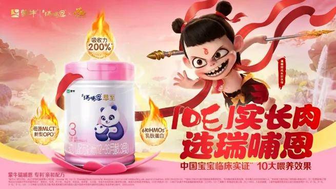 比如,通過特侖蘇的“烏蘭布和沙漠溯源”活動,夯實高端有機心智;妙可藍多聯動奧運、NBA賽事,實現從“兒童奶酪”到“全民奶酪”的品牌升維;瑞哺恩奶粉借勢《哪吒2》IP實現超31億品牌曝光……通過內容敍事和與IP、賽事聯動,蒙牛成功將品牌融入消費者的文化圈層與生活場景。