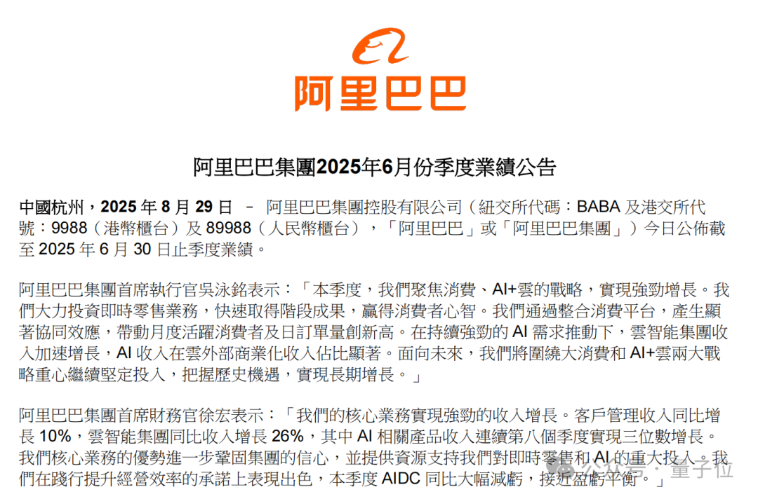 自7月以來,阿里巴巴發佈了升級版的Qwen3,其中包括非同步模型、推理模型和AI編碼模型,這些模型在各自類別中均被公認為全球頂尖水平……我們還開源了多視頻生成模型及文生圖模型,正在賦能客户開發自己的AI應用程序。