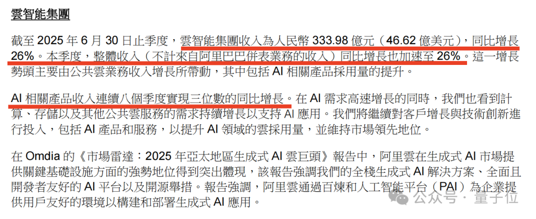 財報明確指出,AI相關產品收入已連續八個季度實現三位數同比增長,這種持續的高速增長在整個雲計算行業都極為罕見。