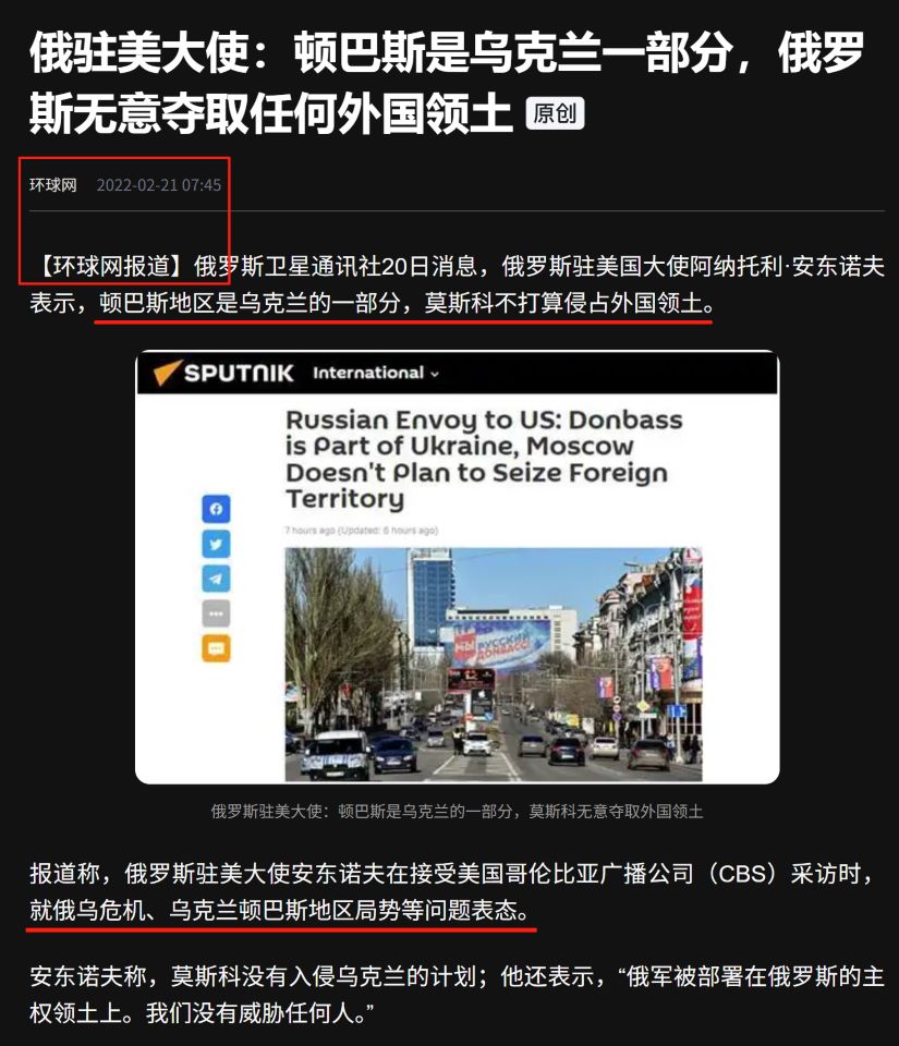 事實上,俄羅斯在“特別軍事行動”之前,其外交部門也就是駐美大使館大使向美國的表態,這可是俄羅斯官方表態!
