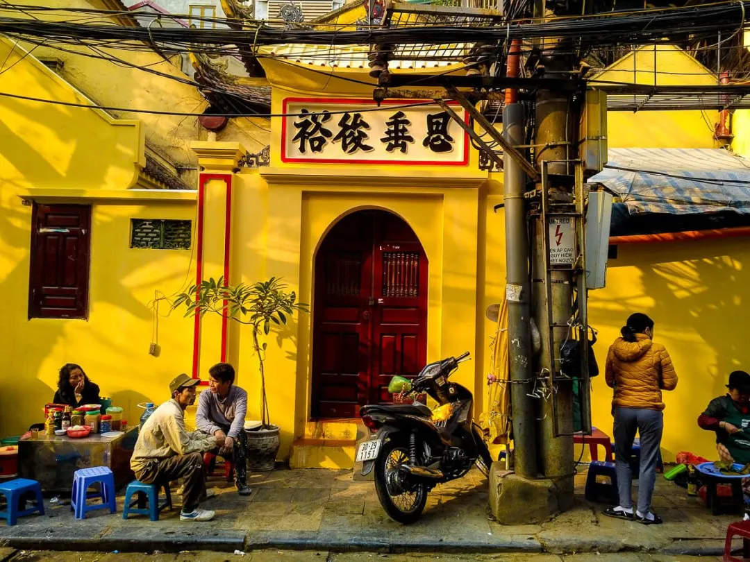 今天,河內味道中,那些炭火烤的糯米餅、米漿蒸的薄餅卷蝦、用陶罐慢燉的豬骨湯,大致都可以追溯到那個時代。而那些熟悉的鏡頭,賣糯米飯的女人蹲在街角,竹籃裏飄出熱氣;賣豆腐腦的老漢,挑着一擔豆腐和糖漿,敲着木勺招呼客人,則都源自那個時代開始的漢化步伐。