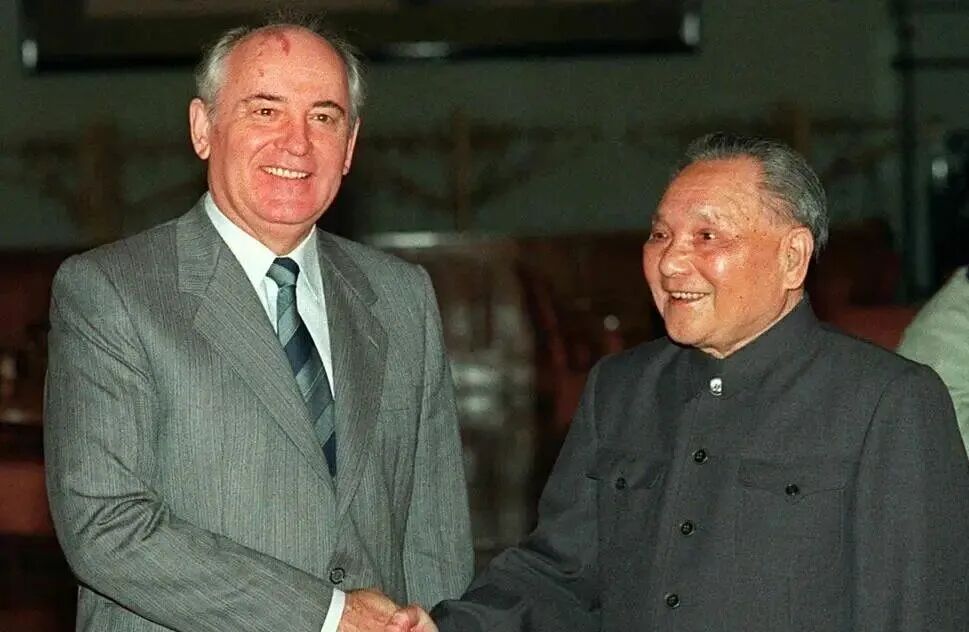 1989年5月16日上午在人民大會堂,鄧小平與戈爾巴喬夫握手。(圖源:央視網)