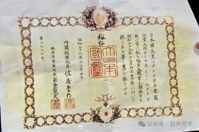1964年,裕仁和內閣向美國李梅將軍頒發了最高勳章“一等旭日大綬章”。