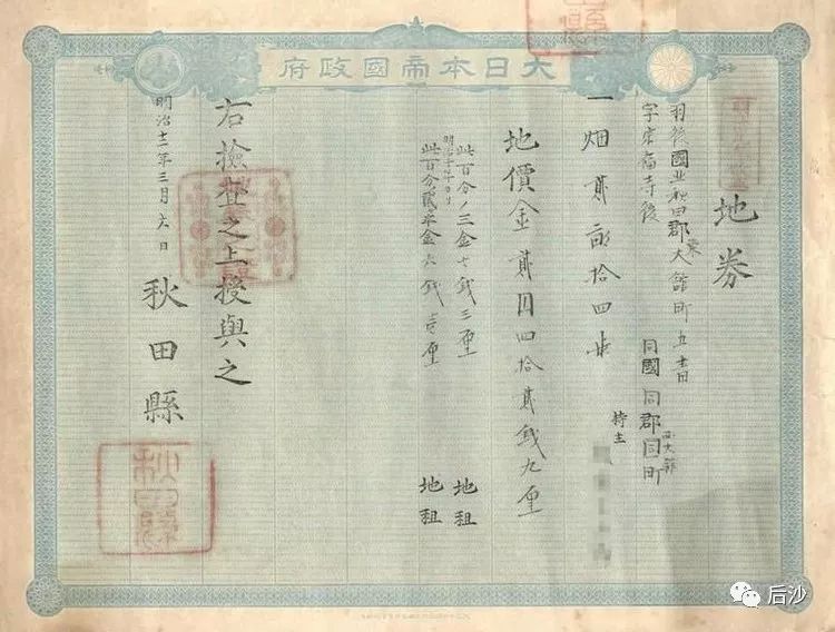 1869年6月,“版籍奉還”,將土地所有權轉移到天皇手中。