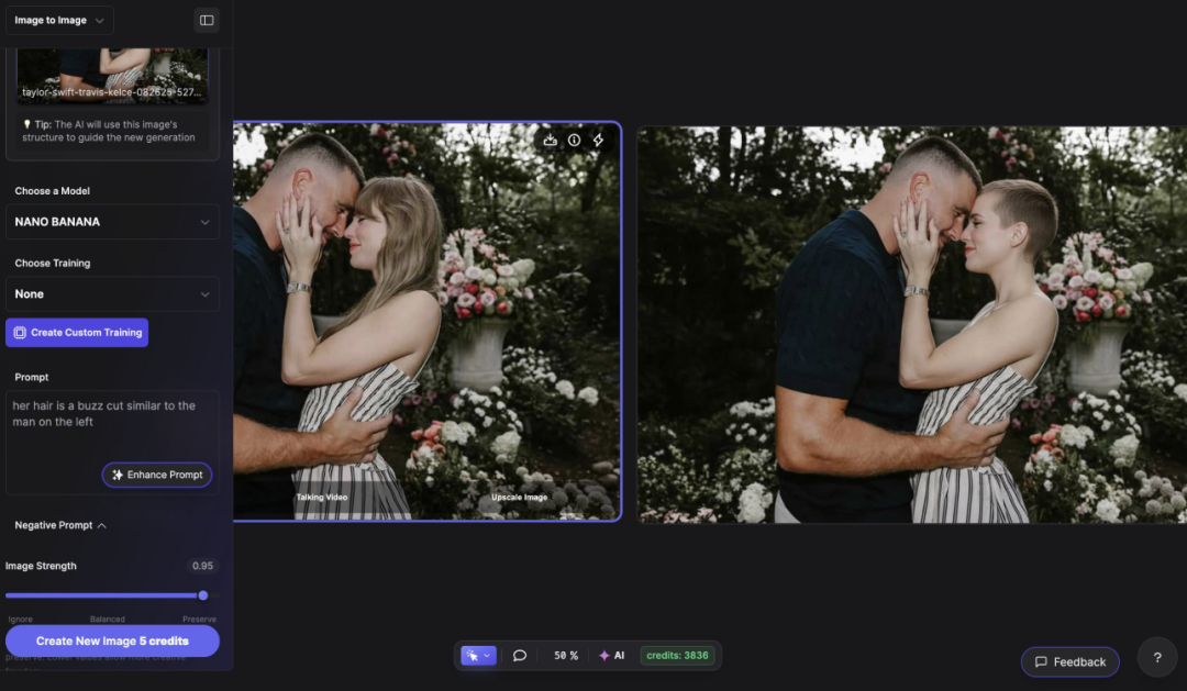 比如説,變表情,你讓AI改變某張照片中的人物的表情,大多數AI沒有辦法正確腦補這張臉的變化,會直接把整個臉都扭曲,Nano Banana就可以分析你的面部特徵,生成更加自然的結果,跟真人照片放在一起,都難以分辨到底誰才是AI。