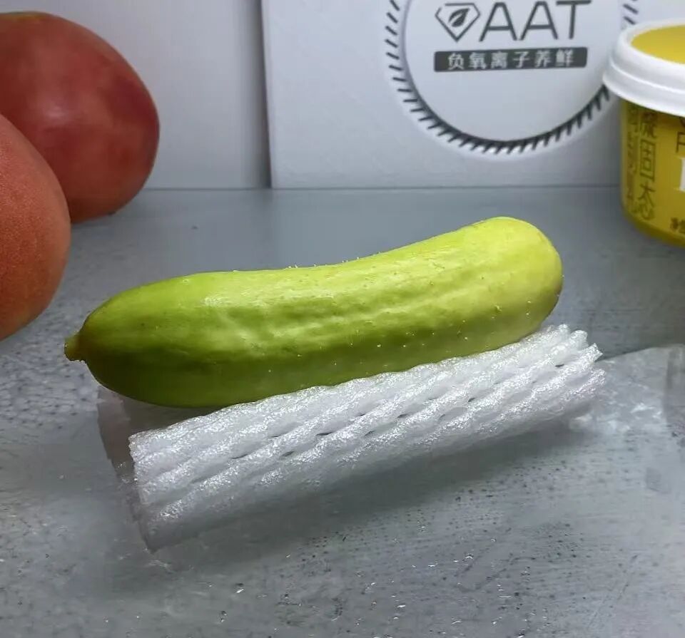 和普通黃瓜比,減肥黃瓜價格略貴:3斤40元;4斤50元;5斤60元。我下單了3斤嚐嚐鮮。到貨後,十來根黃瓜整齊碼放在塑料泡沫箱中,每根都包裹着塑料網,彰顯出它們在黃瓜界的尊貴地位。