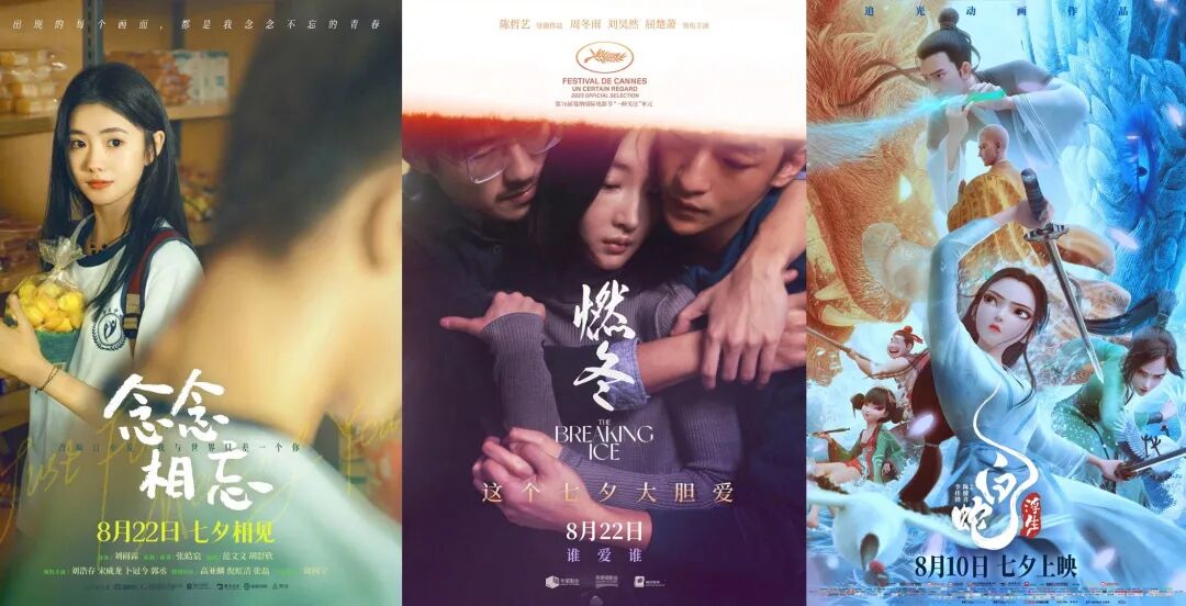 2023年,七夕檔總票房才3.3億,新上映愛情片只有《念念相忘》與《燃冬》,兩部的上座率都很低;2024年稍漲至3.45億,《白蛇:浮生》有愛情元素也是動畫片,單日票房9426萬。