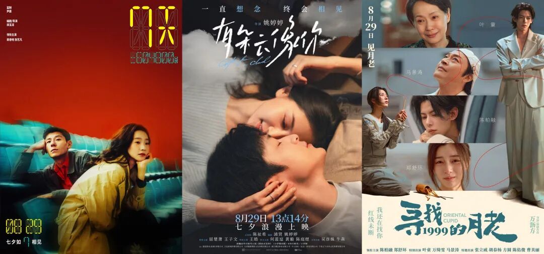 2025七夕檔共有5部新片上映,其中,愛情片都披上了奇幻的外衣。《7天》中男主角能在女孩頭頂看到戀愛時長;《有朵雲像你》講述“重生”歸來的愛情故事;《尋找1999的月老》則直接搬來神話元素。