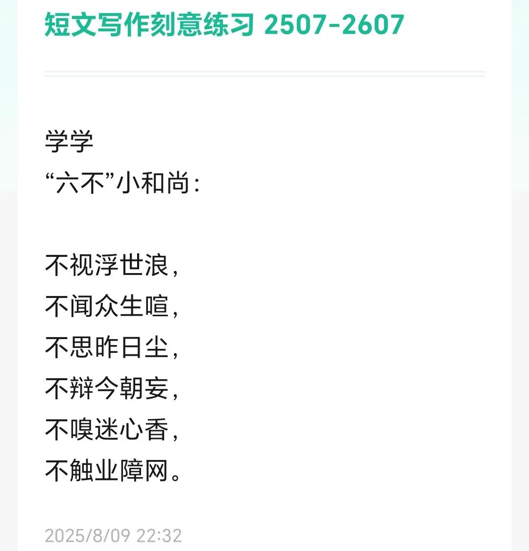 婚後下崗失業,帶兩娃十年。小娃兩週半去律所打工,晚上哄娃入睡自學法學,十年後取得法律工作者資格,現已執業十年。婚前愛詩,高中時曾在省級報刊發表詩作。因帶娃工作三十年未動筆。今年工作穩定孩子學業有成,開始註冊公眾號提筆寫詩!已然失去少年人的靈氣,加之工作忙碌,日更詩作簡直不堪,但仍然鼓勵自己堅持下去。