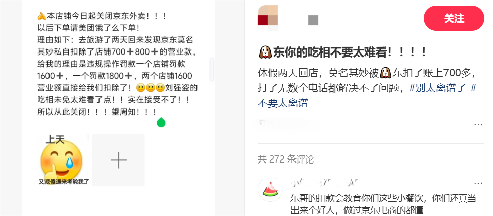 前段時間,部分京東外賣商家在社交平台表示,京東最近平台處罰力度明顯增加。