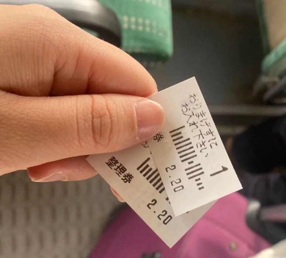 與國內相反,日本巴士後門上車,前門下車。全程一個價的公交,下車給錢或者刷ic卡就可以。但有些公交是按乘坐的站收費,如果有ic卡就上車刷一次,下車再刷一次,如果沒有ic卡,就要上車後在後門附近拿一張整理券,下車把整理券和車費一起給司機。整理券上有編號,代表你從哪一站上車,下車根據編號給車費,車費與編號的對應表會展示在車裏的大屏上。