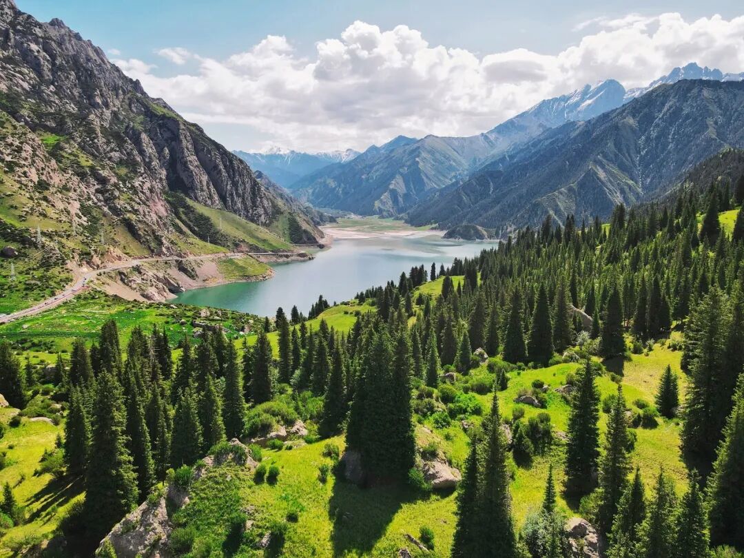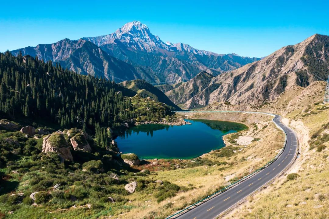 兩顆寶石明珠,就這樣綴在天山上。珍貴的雪蓮生長於此,行駛在路上偶然間也能看到雪雞、黃羊、雪豹的蹤跡。