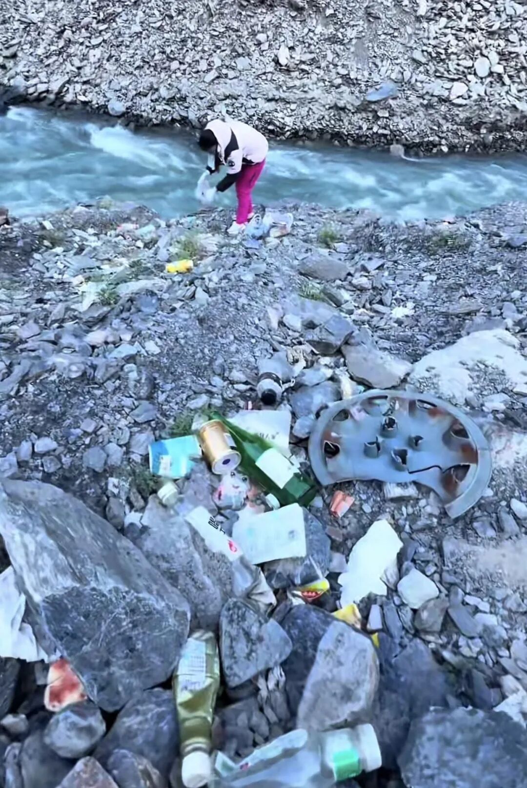 在四川甘孜露營地,隨處可見吸完氧用剩下的氧氣瓶、喝完的飲料瓶、用來當野餐墊的紙殼子,氣得撿垃圾的遊客大喊:“活該你會缺氧”;