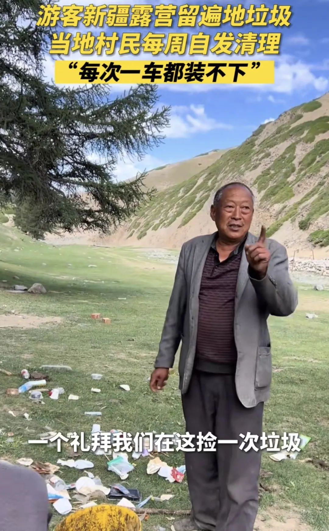有新疆當地的村民,專門會一週一次去撿垃圾。