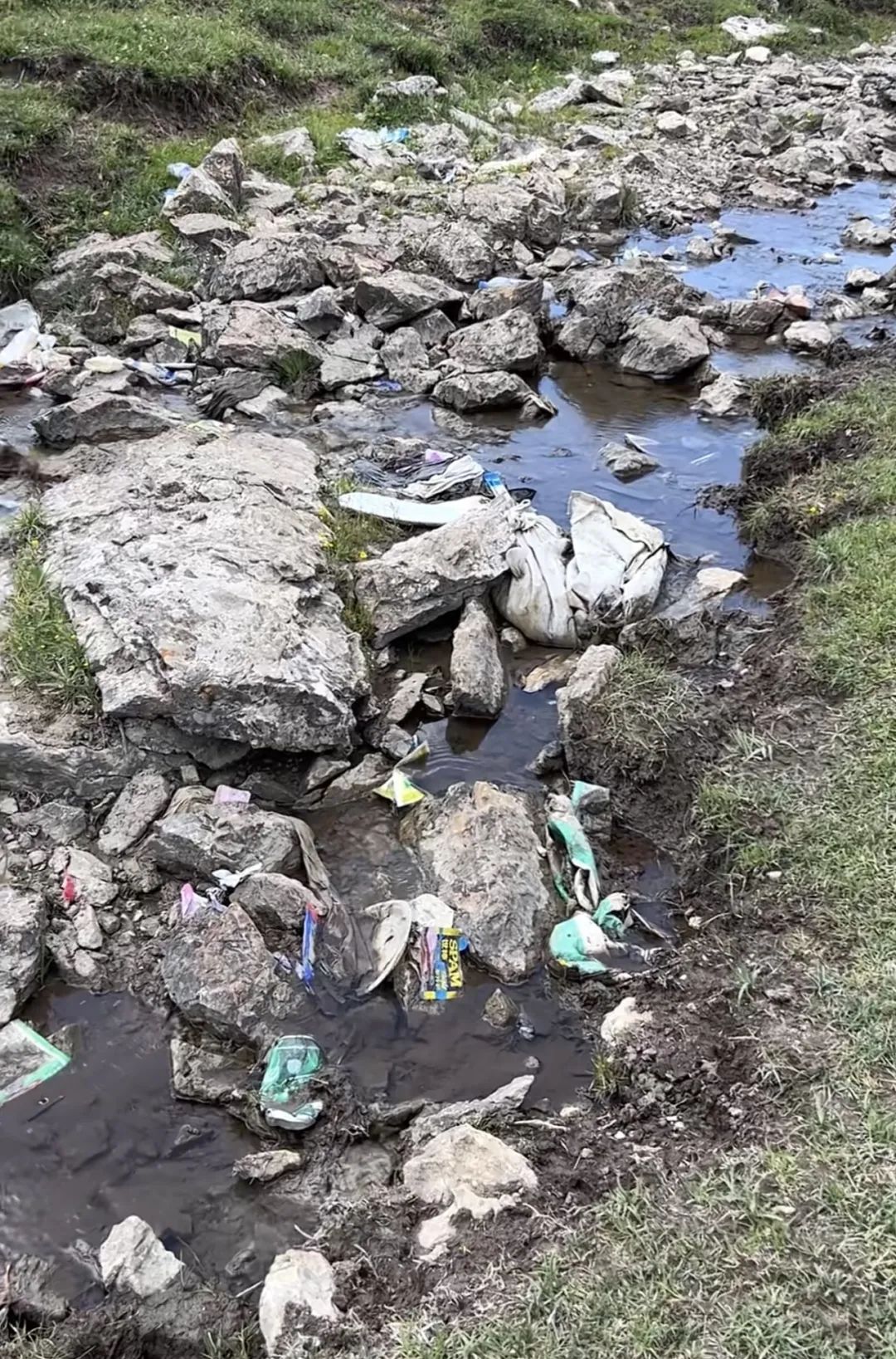 遠看以為是遍地白色的牛羊,實則近處一看是各種塑料袋、飲料瓶……