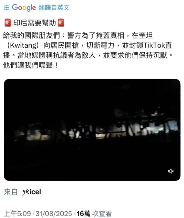 有人在網上呼籲稱印尼需要幫助。警方為了掩蓋真相,在在奎坦(Kwitang)向居民開槍,切斷電力,並封TikTok直播。當地媒體稱抗議者為敵人,並要求他們保持沉默,他們讓我們禁聲。