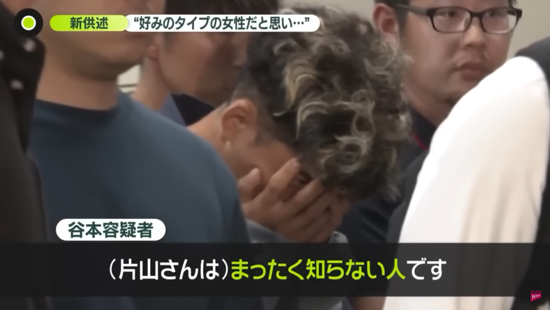 根據谷本的供述,8月18日早上,他在街頭第一次見到片山惠,雖然素昧平生,但是谷本一眼就認定對方是“自己喜歡的類型”,隨即“情難自抑”地尾隨其到了工作單位,此後兩天一直在片山公司的周邊徘徊、蹲守。