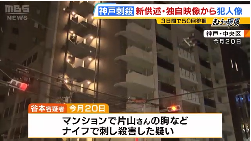 事情發生在今年的8月20日19時20分左右,兵庫縣神戸市中央區一棟公寓的電梯內,24歲的單身女性片山惠在結束一天的工作後回家,突然遇到一個奇怪的陌生人,對方掏出匕首對其連刺數刀,片山惠當場身亡。