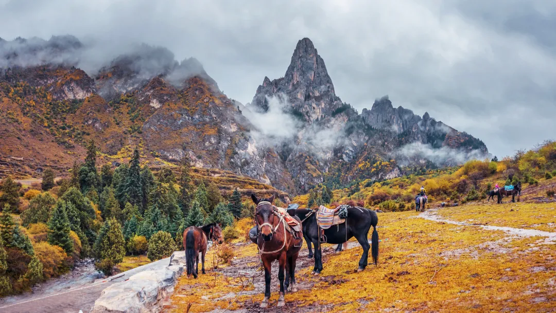 潔白肅穆的三神山、碧藍色的牛奶湖、五色海、還有變成了金黃色的洛絨牛場……在這裏不需要濾鏡,隨手一拍都是絕美風景。