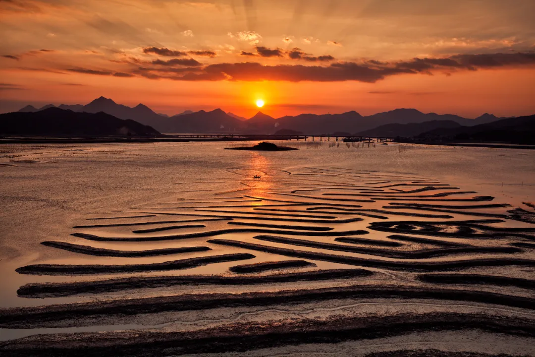 霞浦,是閩東最古老的縣,有中國面積最大的灘塗、最美海岸線,每年吸引了無數攝影愛好者。北岐灘塗,日出時整個海面都是金黃的,光照下影子搖搖晃晃,秒殺無數菲林。