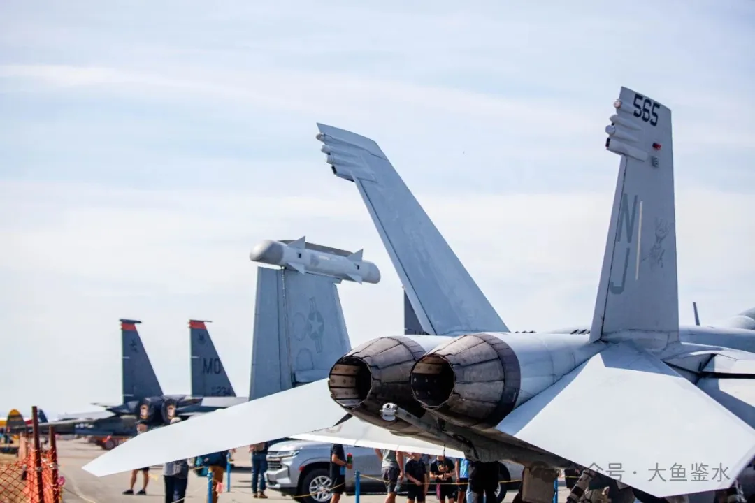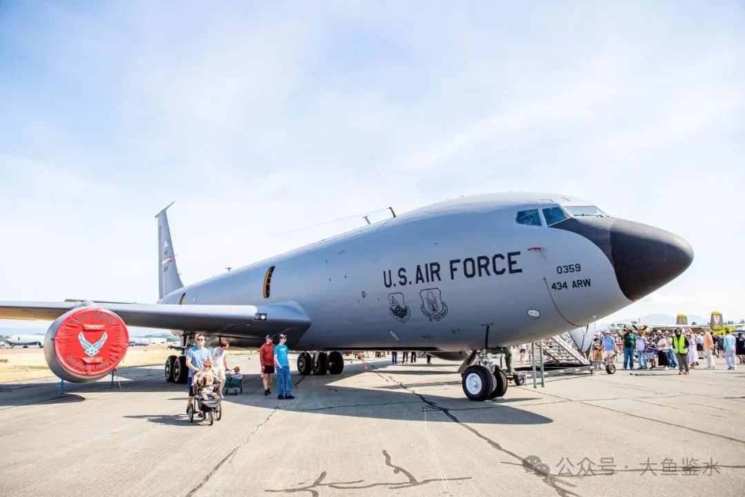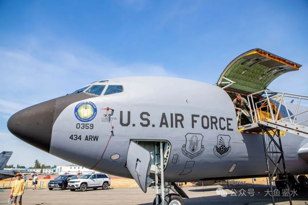參展的60-0359號機是1961年5月12日下線的,機齡達到64年。1986年換裝CFM-56渦扇發動機,從KC-135A升級為KC-135R,由空軍現役單位轉入第434聯隊。從外觀看飛機保養得相當好,甚至比兩架F-15E還顯得新,不過從後機身密密麻麻的加強筋就可以看出真的是廉頗老矣。