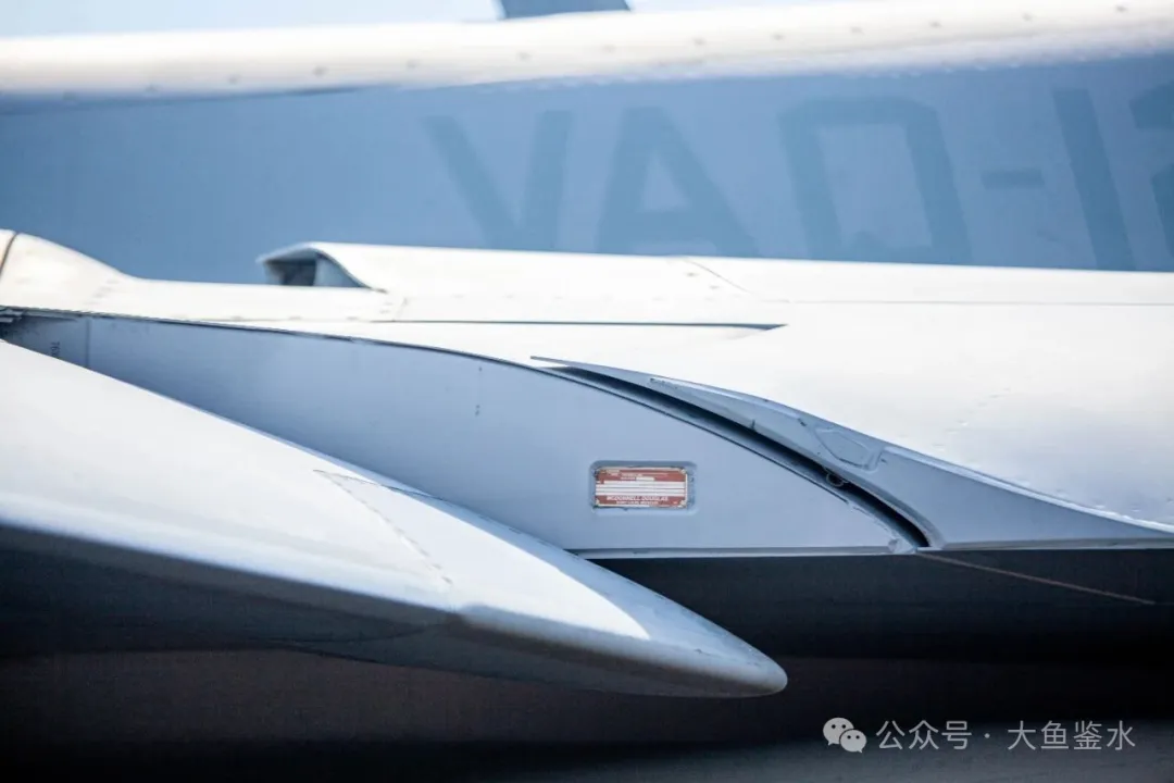 > 邊條外側的這條縫隙過去沒注意到,這次因為前緣襟翼處於放下位置看得比較清楚,是進氣道附面層泄放系統的排氣道